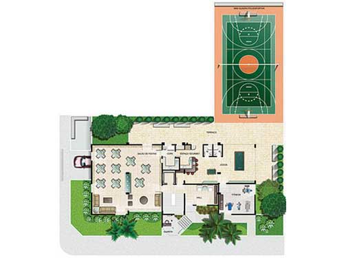 - Salão de Festas, quadra de peteca, sala de ginástica, espaço gourmet com churrasqueira